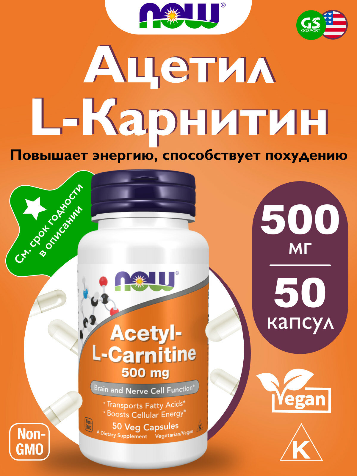 Купить NOW Acetyl-L-Carnitine, Ацетил-L-Карнитин 500 мг - 50 вегетарианских капсул