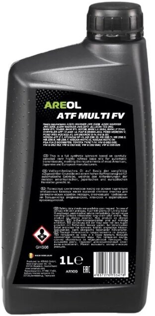 AREOL AR109 AREOL ATF MULTI FV (1L)_жидк. дя АКПП и ГУР! синт.,жет., анаог Febi