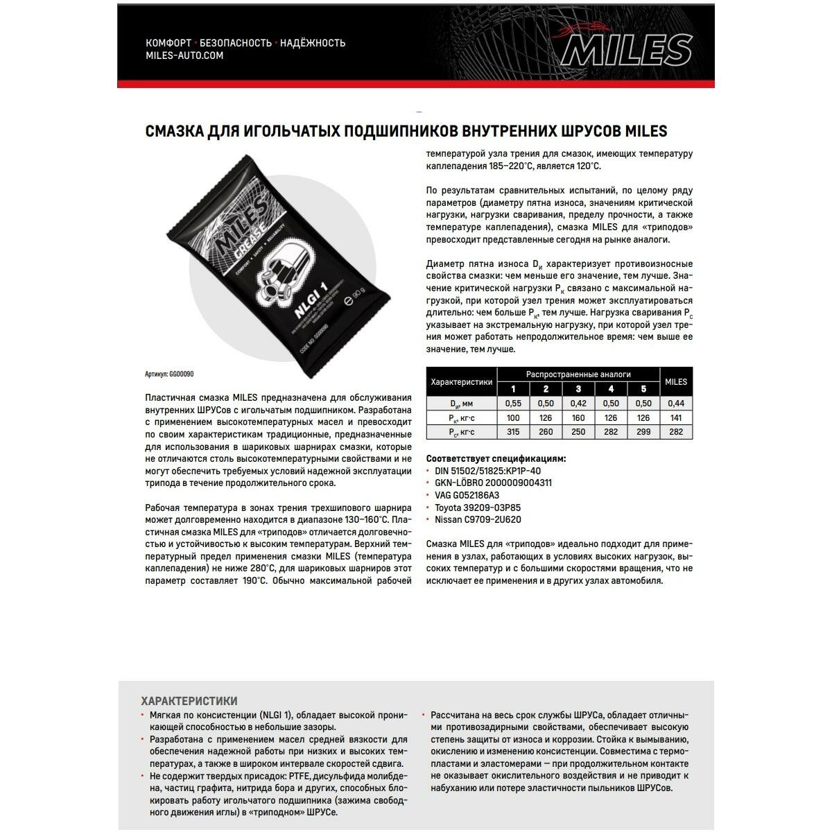 Смазка Шрус Miles Типа Tripod Gg00090 Miles арт. GG00090