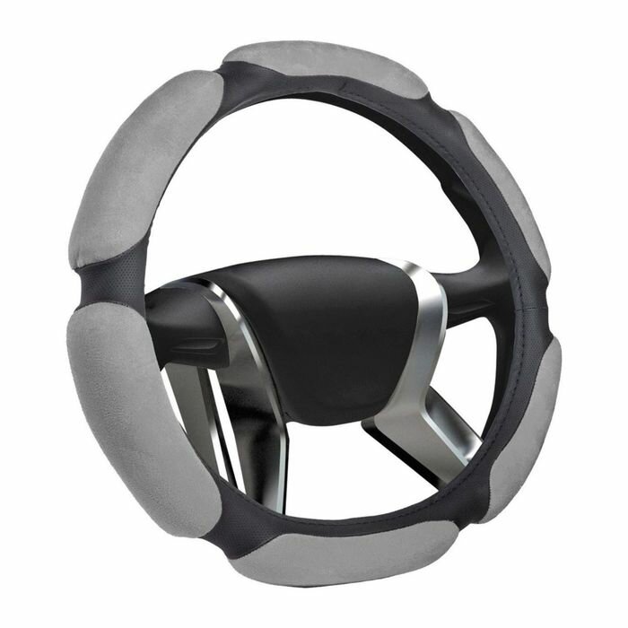 Оплетка на руль Top-12 SKYWAY M (37-39) серый экокожа, S01102501