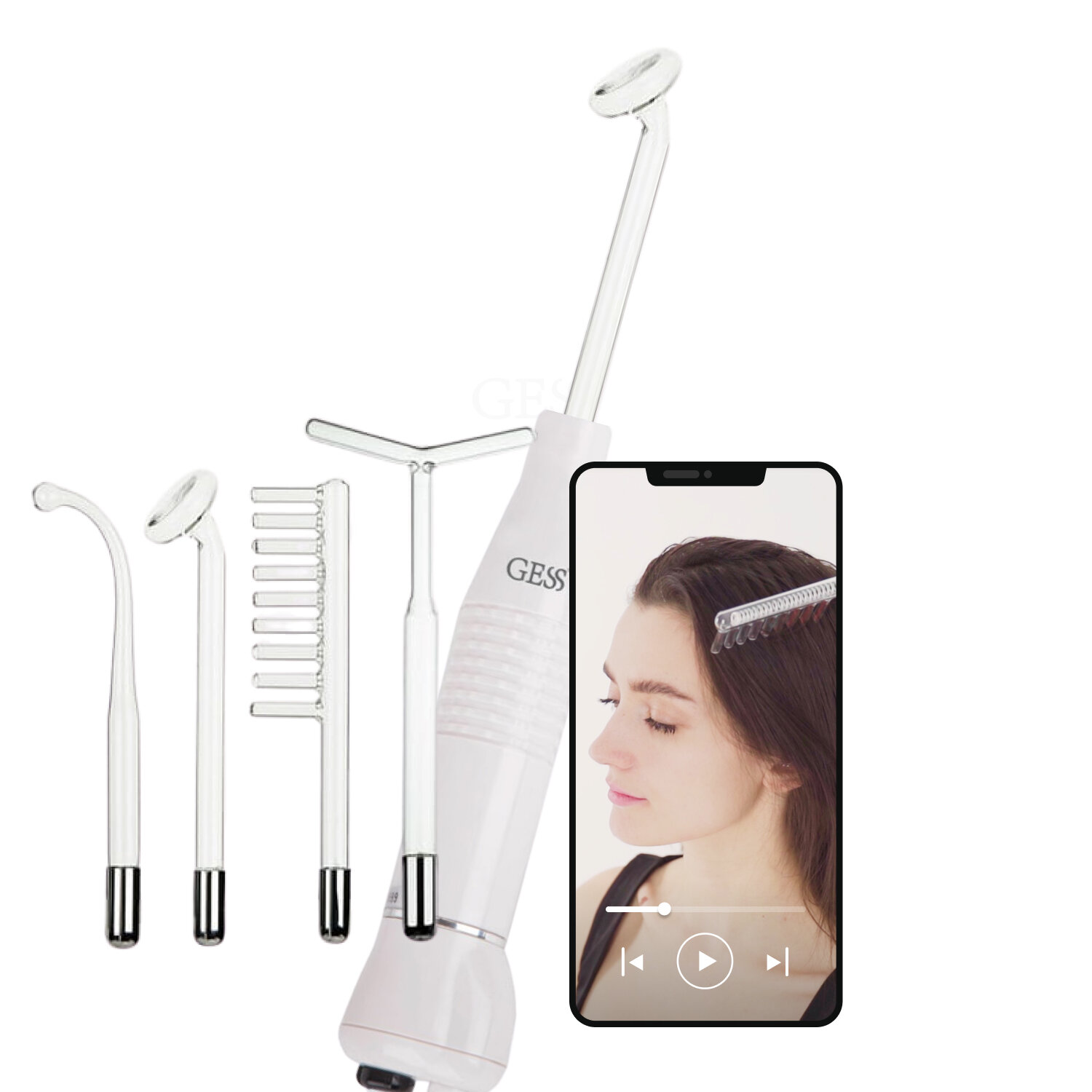 GESS Аппарат дарсонваль медицинский импульсный Super Nova GESS-623 для лица, для волос, для тела, 4 насадки белый 4 шт.