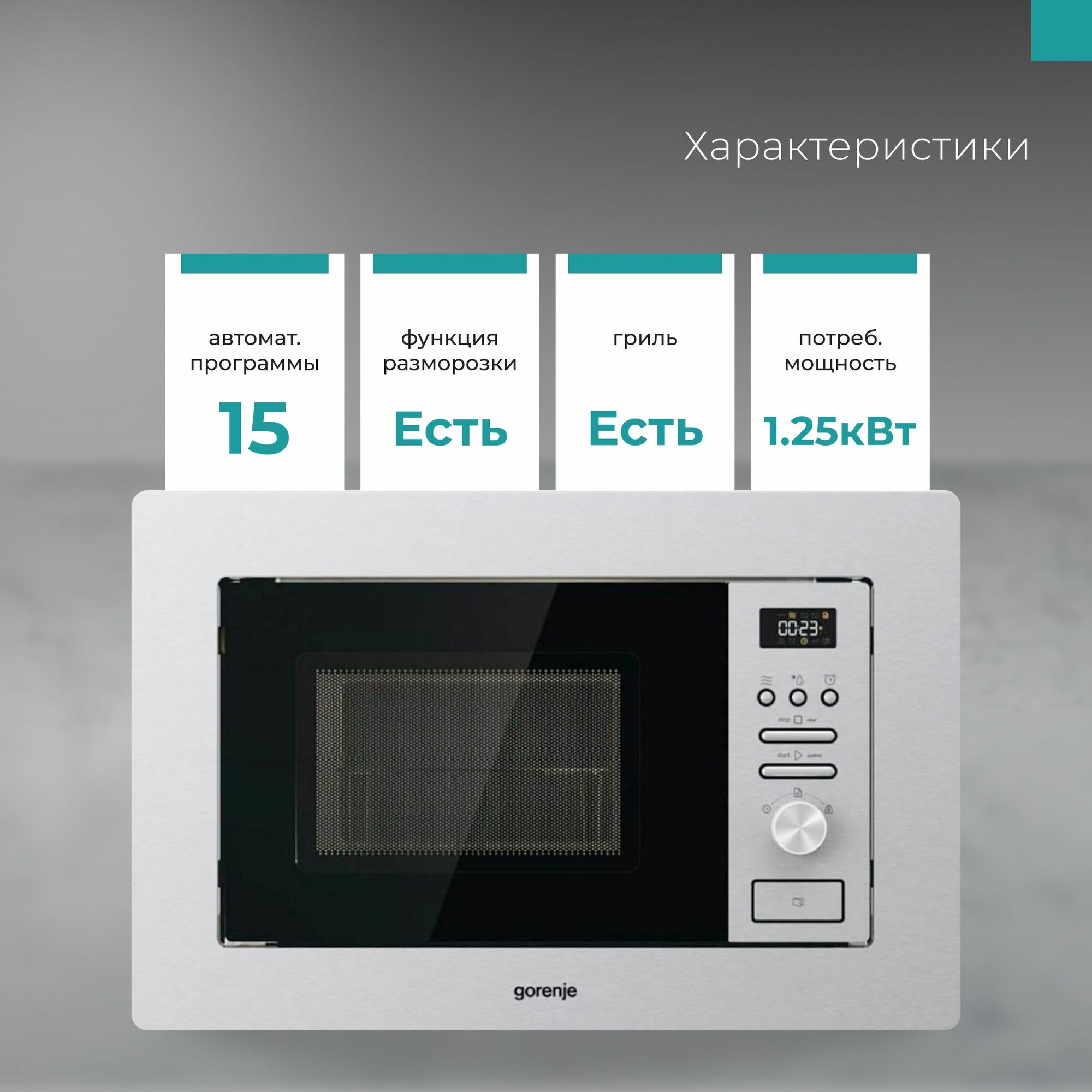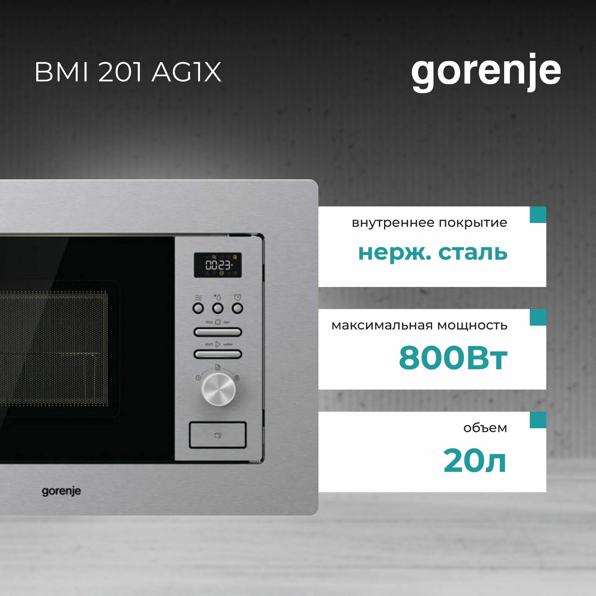 Микроволновая печь встраиваемая Gorenje BMI201AG1X нержавеющая сталь интересное: