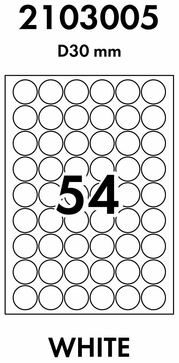 54 деления (D - 30мм) самоклеющаяся бумага круглая, 70 г/м2, А4, 50 листов, Lomond 2103005