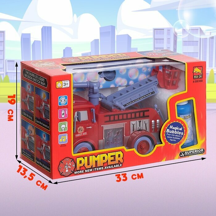 --- Машина "Пожарная служба" с мыльными пузырями, световые и звуковые эффекты, работает от батареек