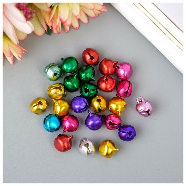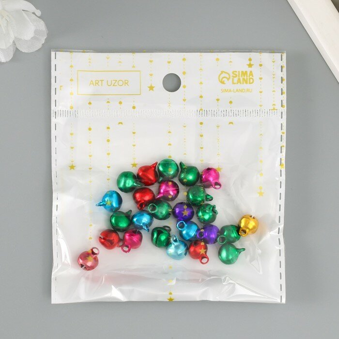 Купить Набор декора для творчества металл "Колокольчики цветные" (набор 25 шт), d-1 см, 12х10 см