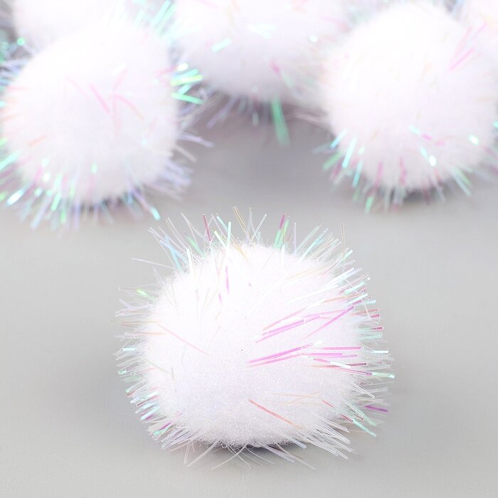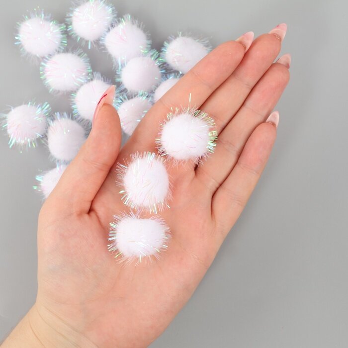 Набор деталей для декора "Бомбошки с блеском" набор 18 шт., размер 1 шт: 2.5 см,цвет белый перламутр