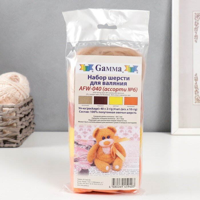 Gamma' AFW-040 набор шерсти для валяния 100% мериносовая шерсть 4 х 10 г цвет ассорти №10