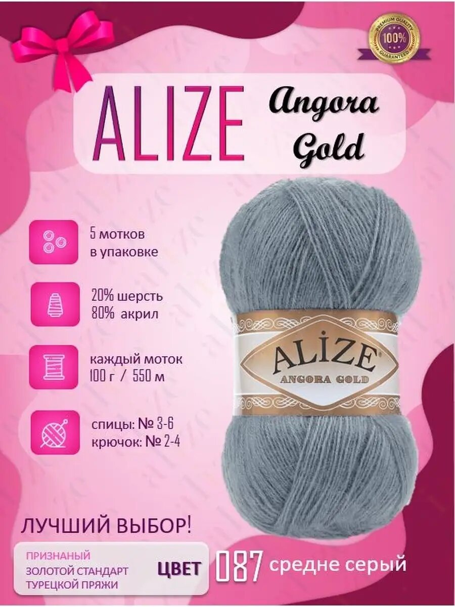 Пряжа Alize Angora Gold | Турция | 5шт упаковка | Акрил: 80%, Шерсть: 20%