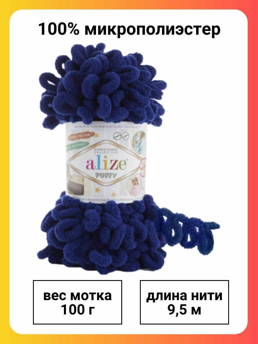 Пряжа ALIZE "Puffy", 100 г 9 м, 100% микрополиэстер, 360 василек, 5 шт