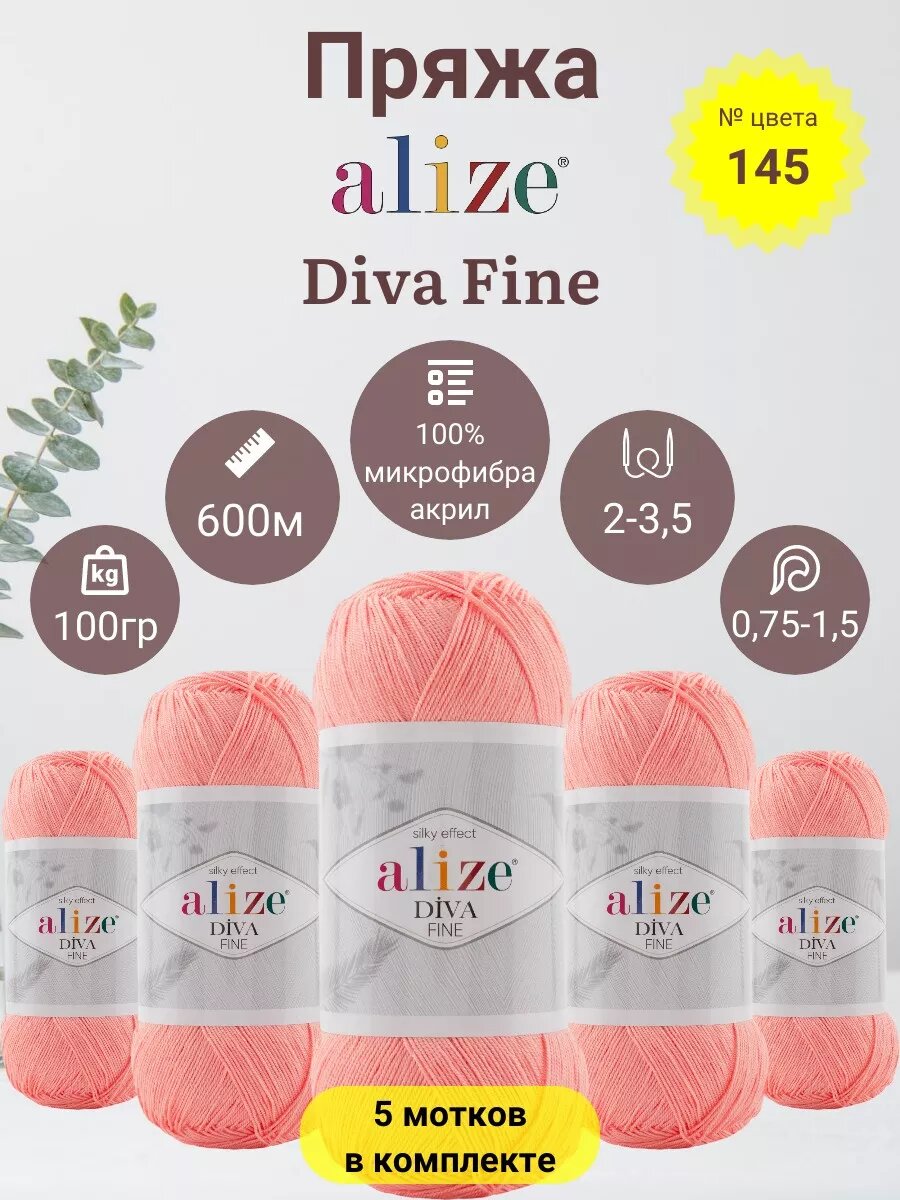 Купить Пряжа для вязания ALIZE 'Diva Fine' 100г, 600м (100% микрофибра акрил) ТУ (145 лососевый), 5 мотков