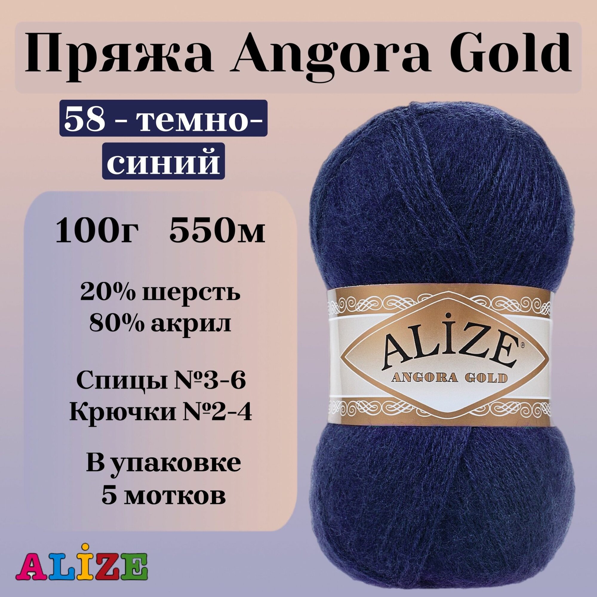 Купить Пряжа для вязания Alize Angora Gold, цвет 58 темно-синий, 100г, 550м, 5шт/упак