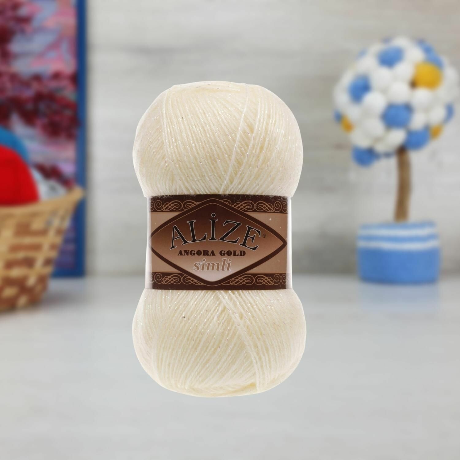 Купить Пряжа ALIZE ANGORA GOLD SIMLI, молочно-бежевый - 67, 5% металлик, 20% шерсть, 75% акрил, 5 мотков, 100 г., 500 м.