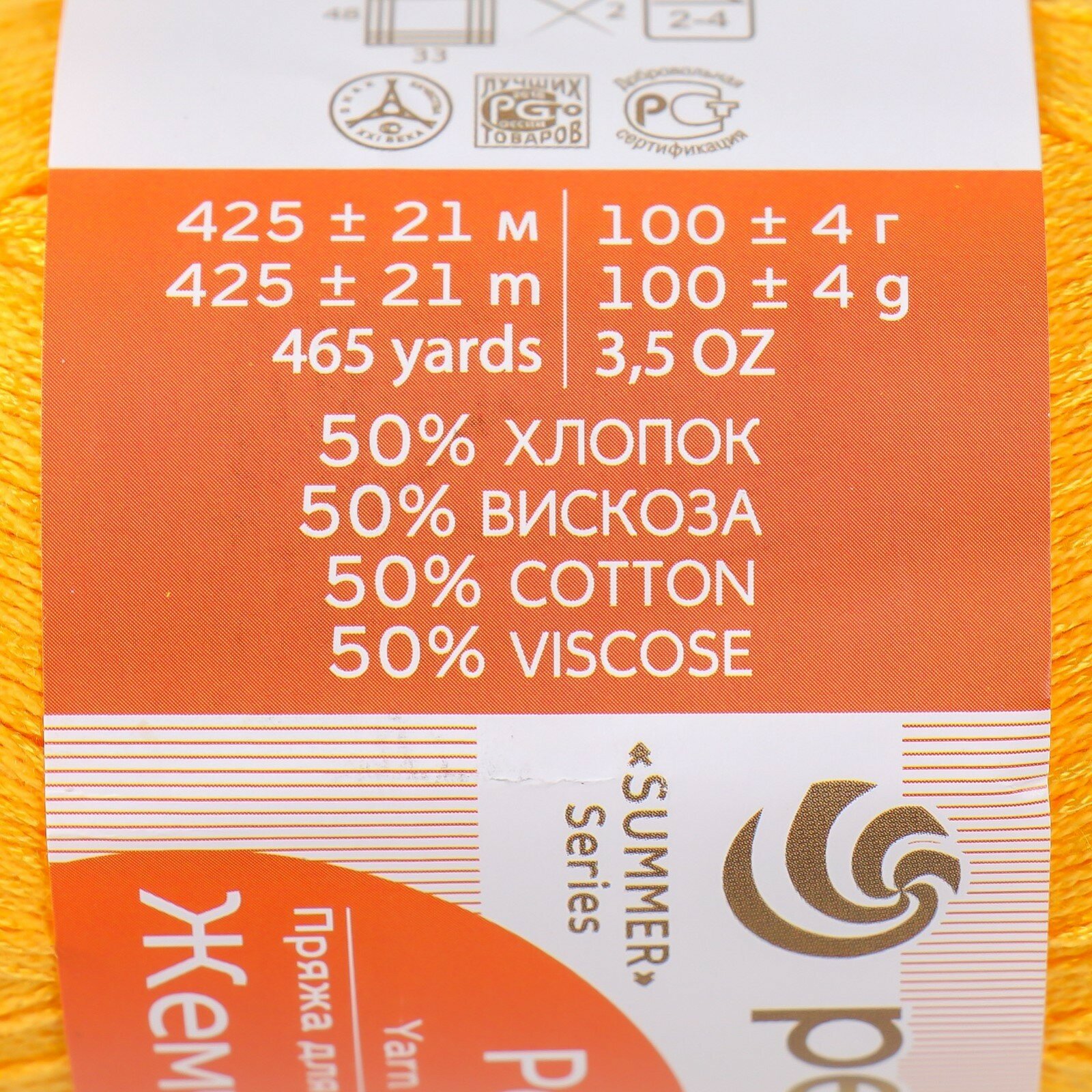 Купить Пряжа для вязания Пехорка 'Жемчужная', 100г, 425м (50% хлопок, 50% вискоза) (12 желток), 5 мотков