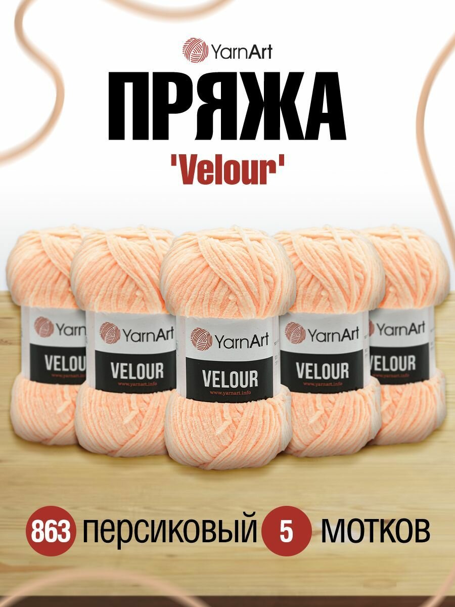 Купить Пряжа для вязания YarnArt 'Velour', 100г, 170м (100% микрополиэстер) (863 персиковый), 5 мотков