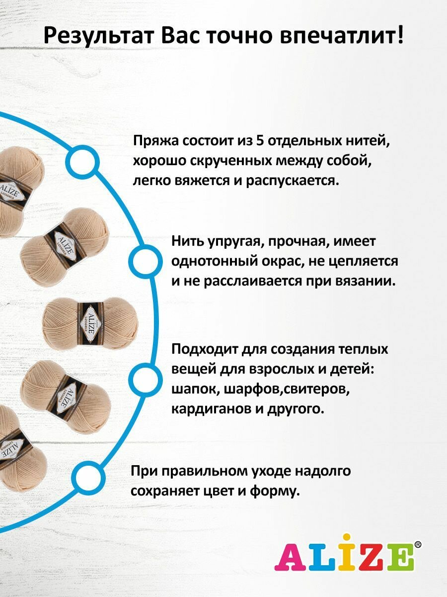 Пряжа Ализе Ланаголд 5 мотков/100г/240м цвет: беж 5