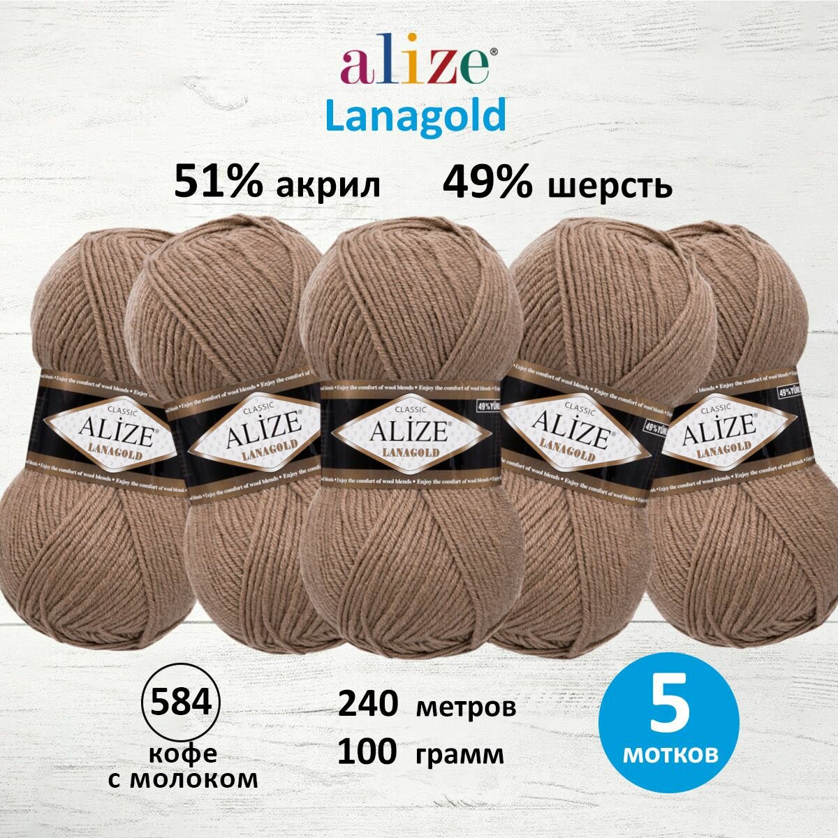 Купить Пряжа ALIZE Lanagold (5 мотков по 100 грамм) 584