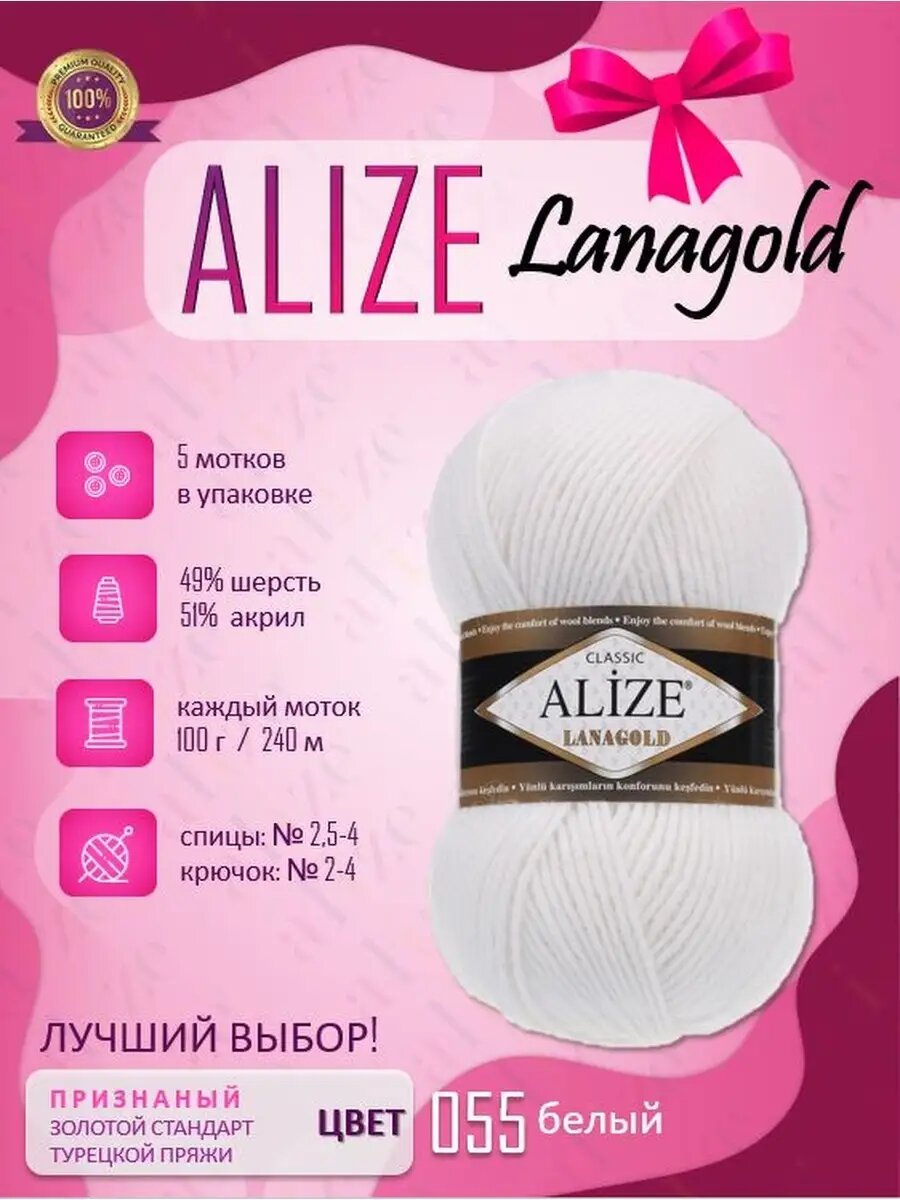 Пряжа Alize Lanagold | Турция | 5шт упаковка | Акрил: 51%, Шерсть: 49%
