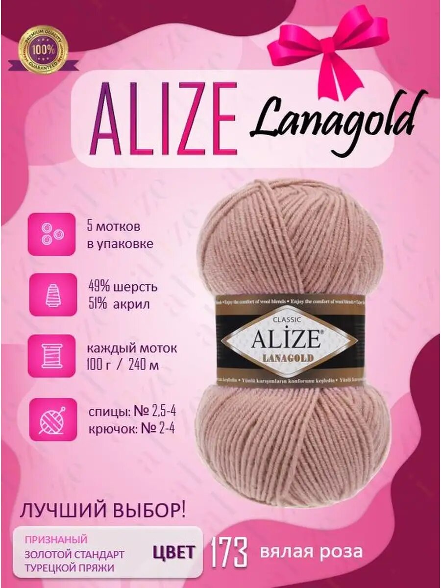 Ниже Вы можете прочитать отзывы на Пряжа ALIZE Lanagold (5 мотков по 100 грамм), ознакомится с подробными характеристиками, посмотреть интересные обзоры и фотографии на Пряжа ALIZE Lanagold (5 мотков по 100 грамм).
