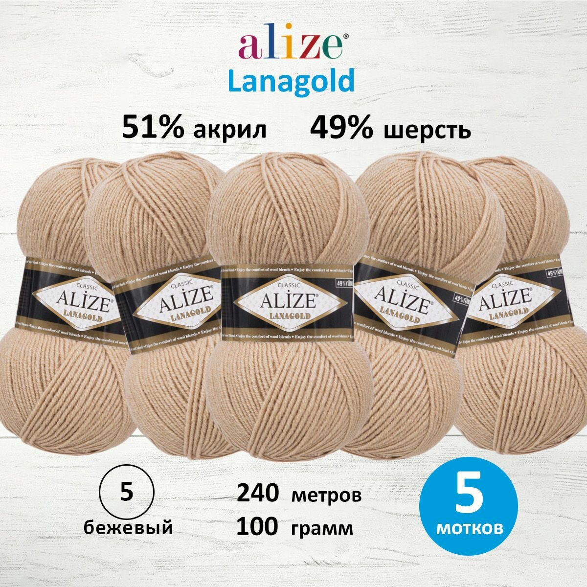 Пряжа Alize Lanagold бежевый (05), 51%акрил/49%шерсть, 240м, 100г, 1шт