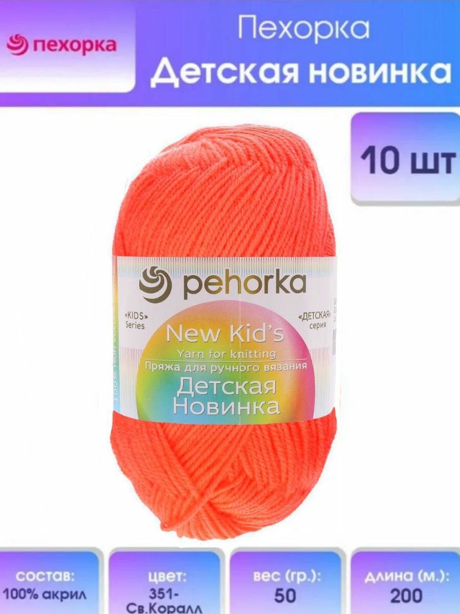 Пряжа для вязания Пехорка 'Детская новинка' 50г, 200м (100% акрил) (351 светлый коралл), 10 мотков