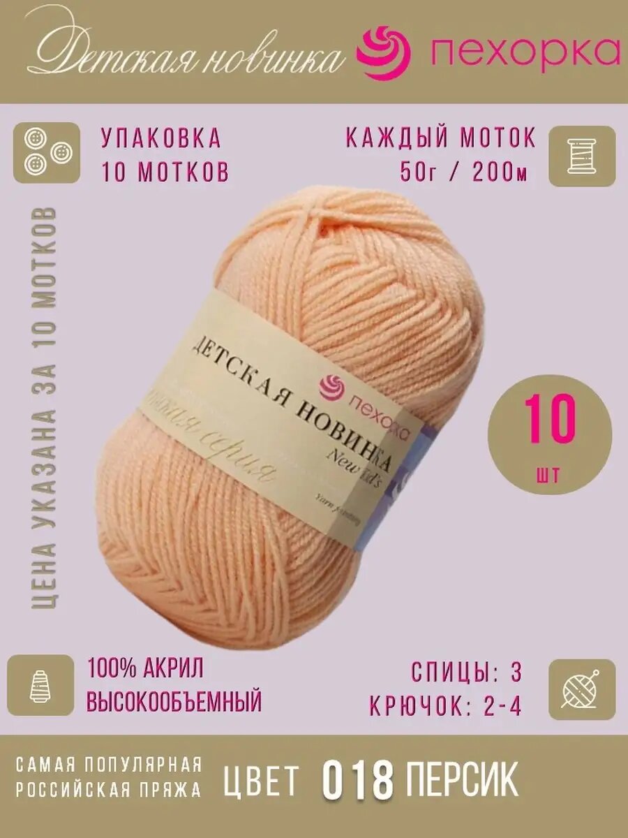 Пряжа для вязания Пехорка 'Детская новинка' 50г, 200м (100% акрил) (18 персик), 10 мотков