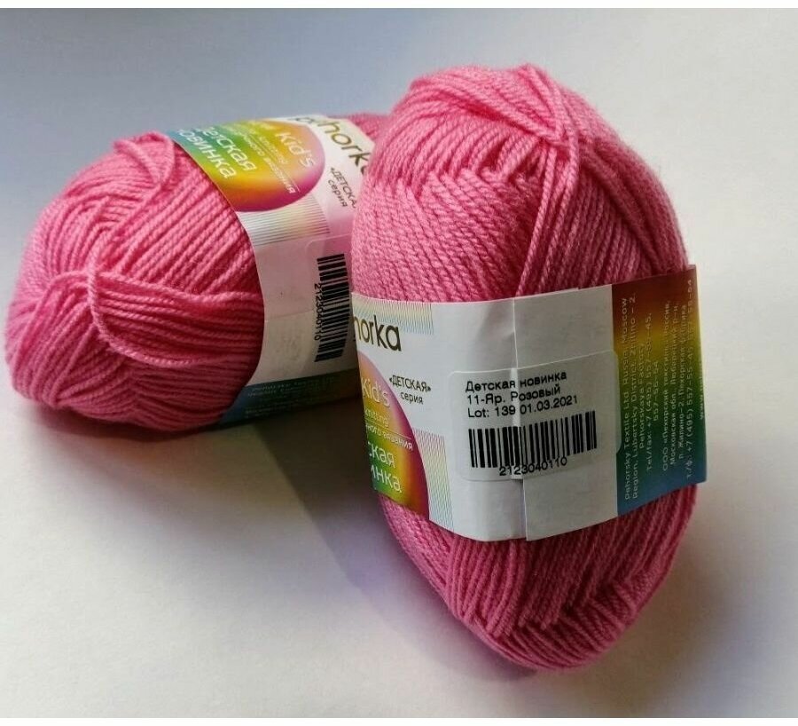 Пряжа для вязания Пехорка Детская Новинка - Ярко - розовый (11), 50гр / 200м (100% акрил) - 3 шт