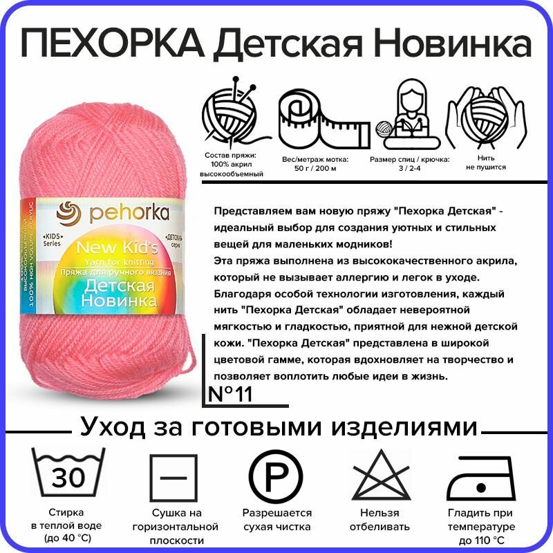 СохранитьПряжа для вязания Пехорка Детская Новинка - Ярко - розовый (11), 50гр / 200м (100% акрил) - 3 шт интересное: