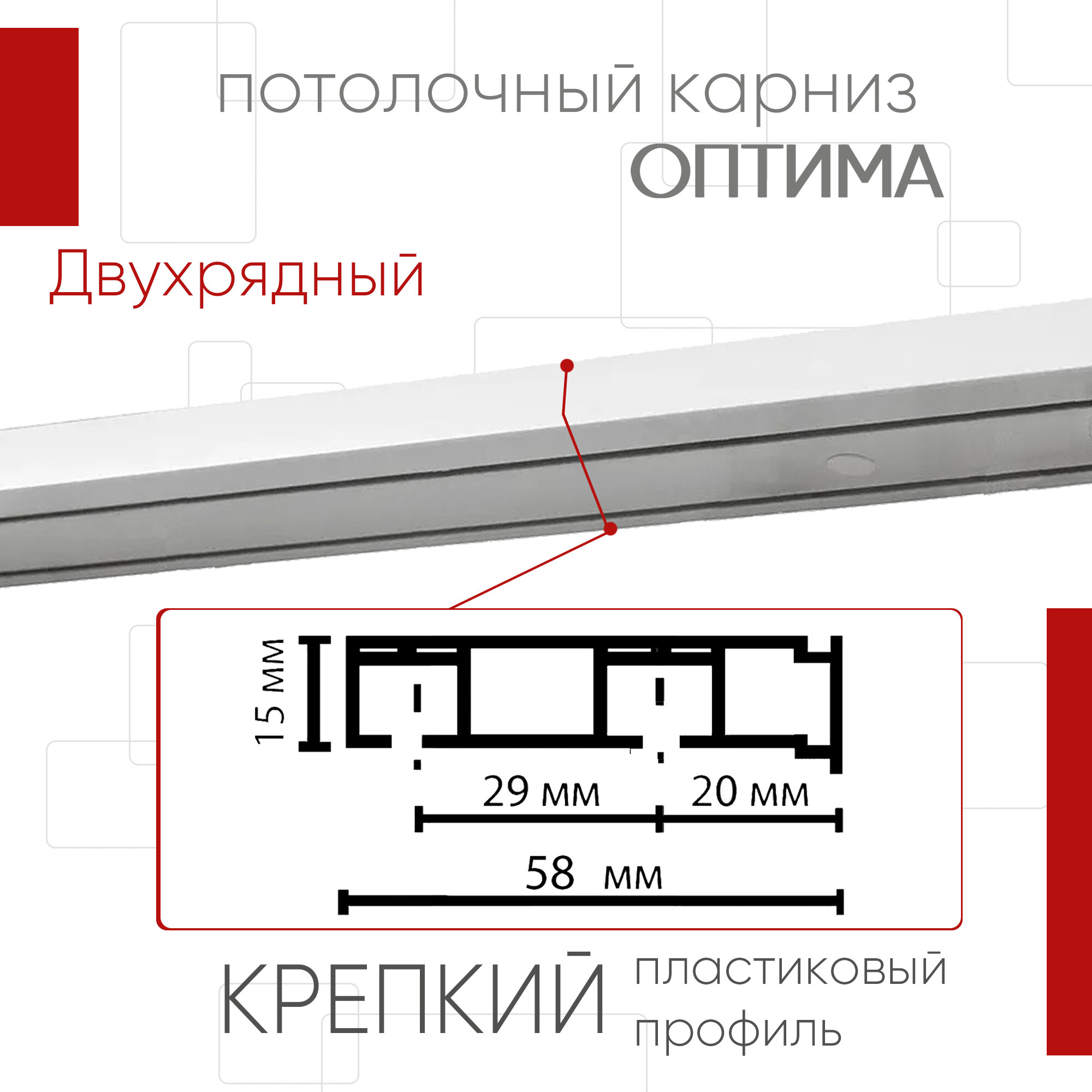 Карниз пластмассовый потолочный двухрядный Оптима 180 см, белый