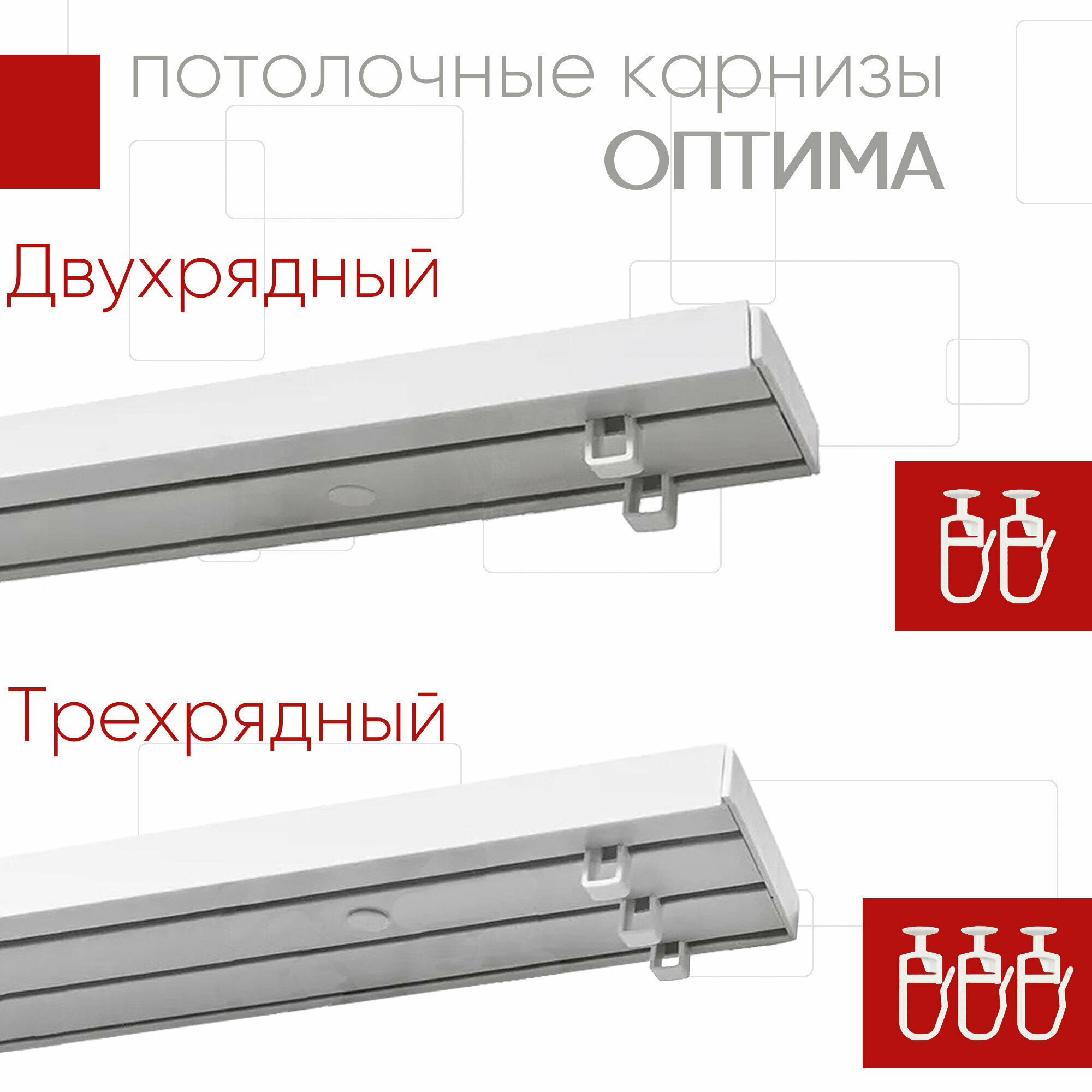 Карниз пластмассовый потолочный трехрядный Оптима 240 см, Составной из двух частей