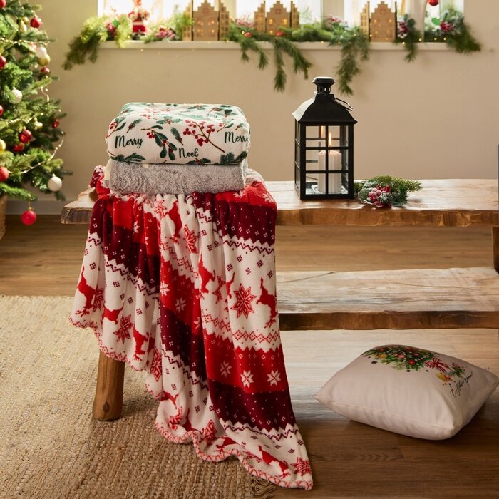 Плед Этель "Новогодний узор" 180 200 см,100% п/э, корал-флис 220 гр/м2