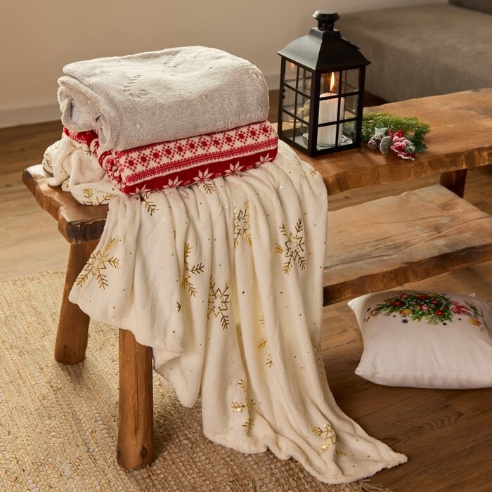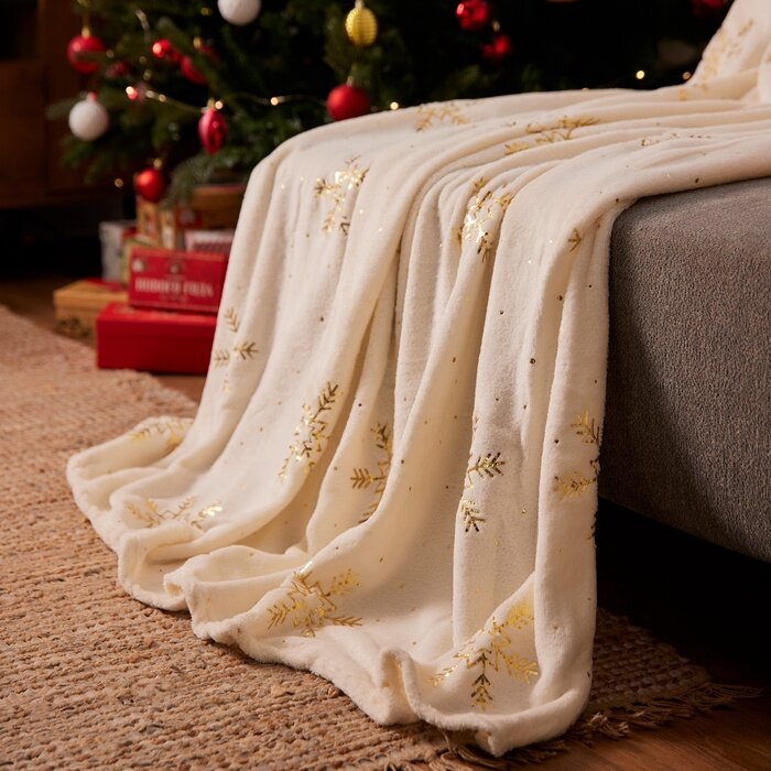 Плед Этель «Золотые снежинки», белый, 150х200 см, корал-флис