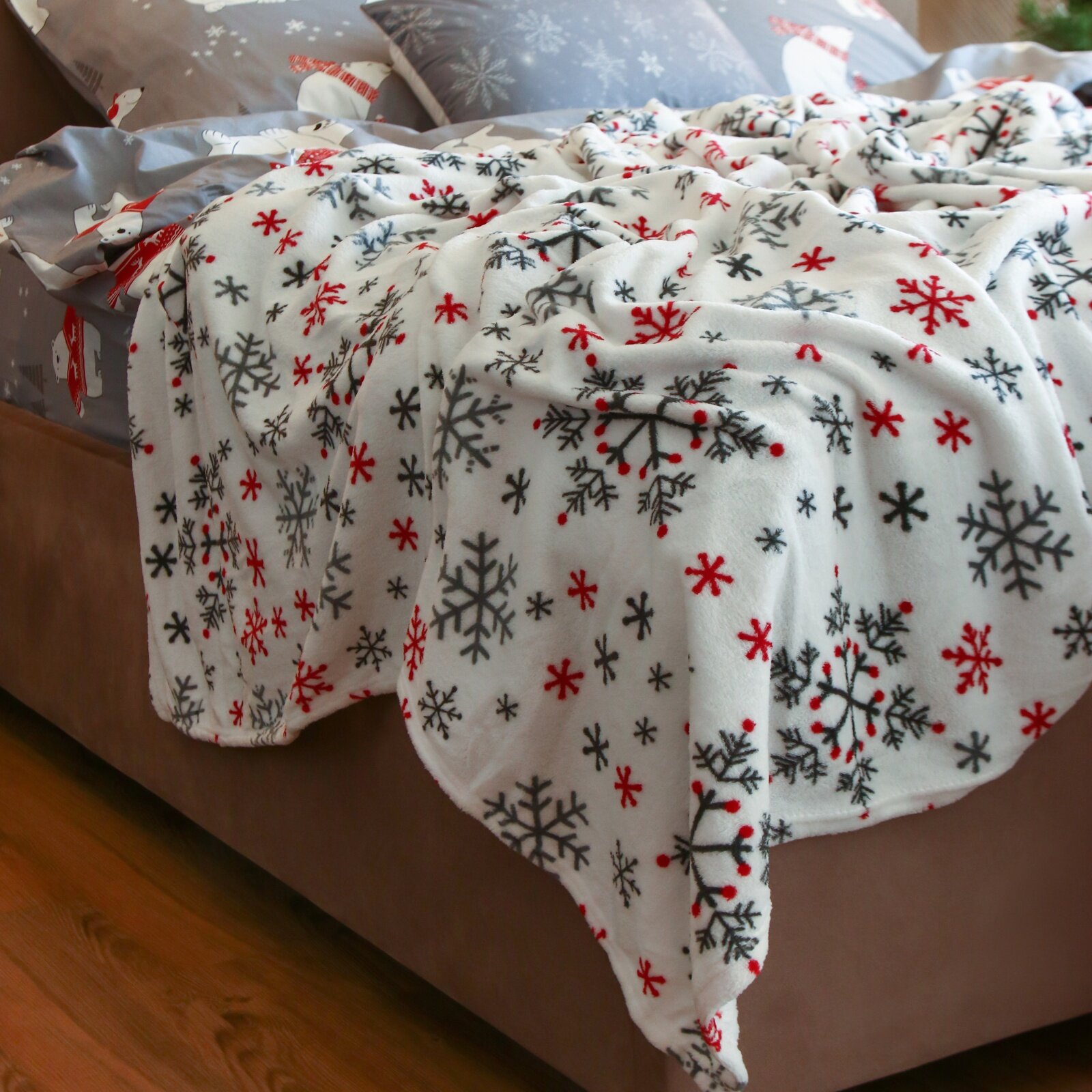 Плед Этель «Снежинки», 180х200 см, корал-флис (1 шт.)