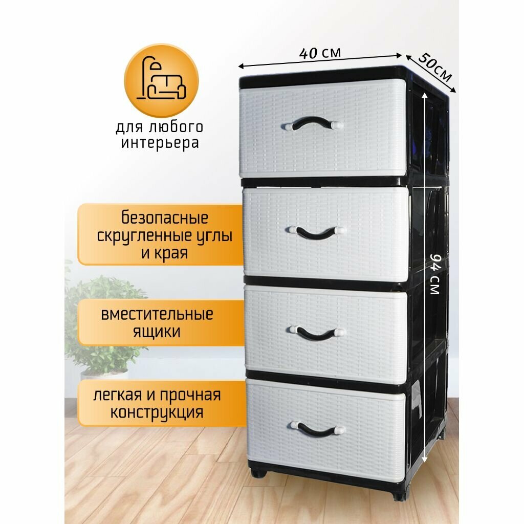 Комод 4 ящика, Дюна, 50х40х94 см, черно-серебряный, 04014, Dunya Plastik