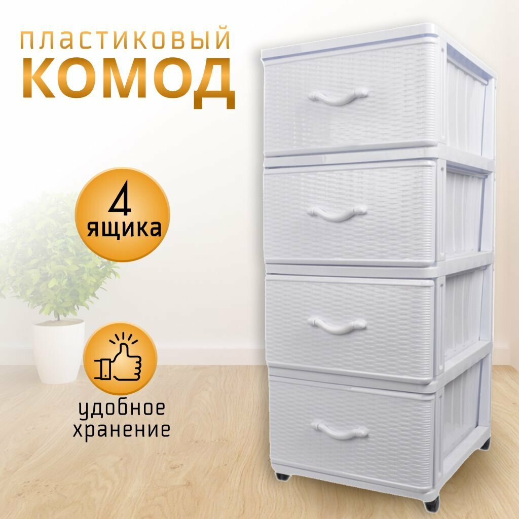 Комод 4 ящика, Дюна, 40х50х98 см, белый, плетеный, 04054, Dunya Plastik