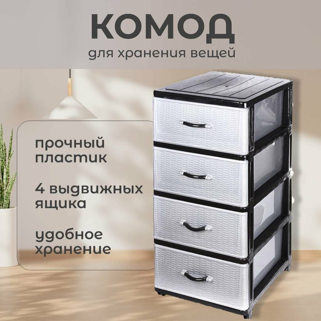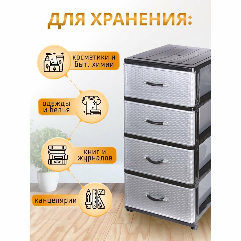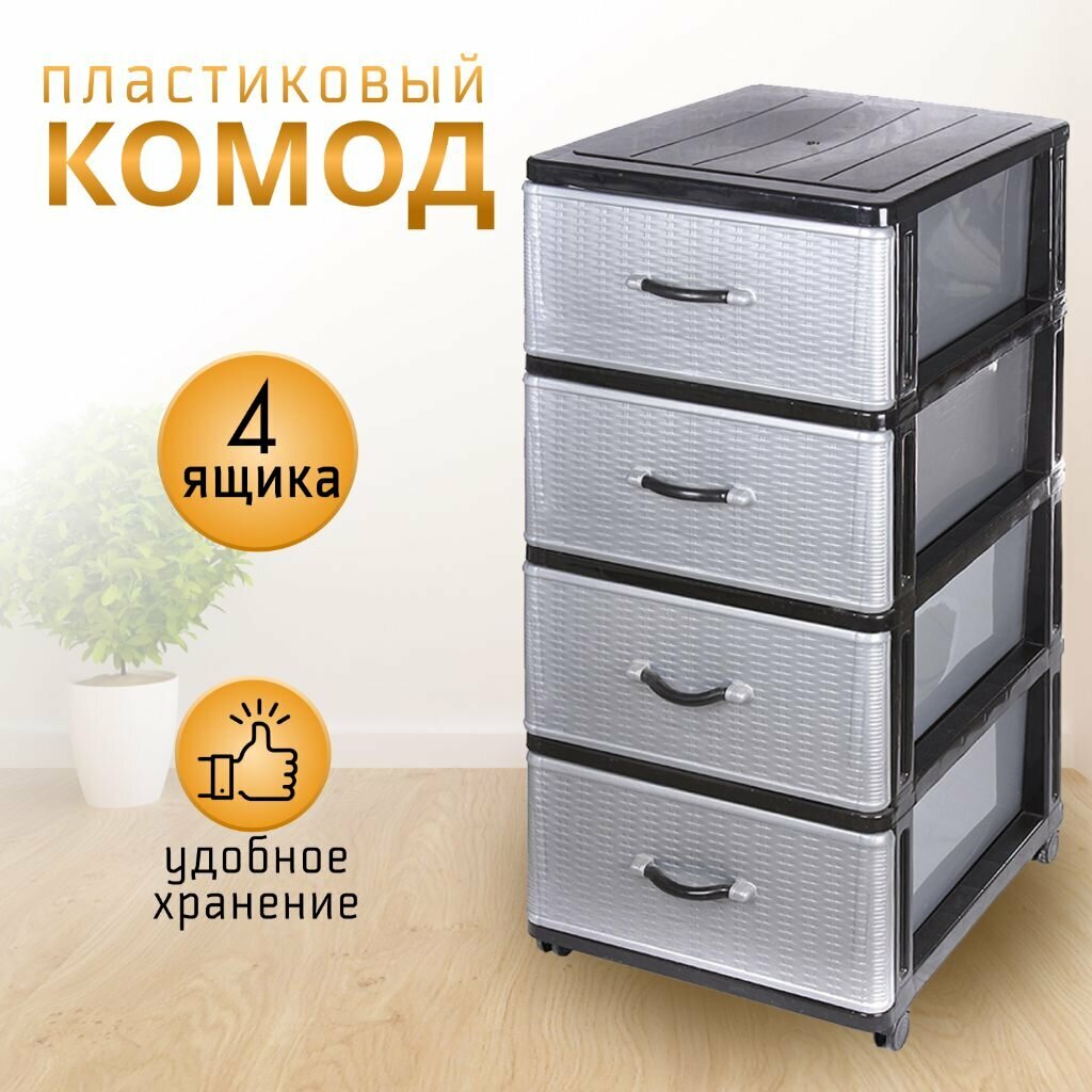 СохранитьКомод 4 ящика, Дюна, 50х40х94 см, черно-серебряный, 04014, Dunya Plastik интересное: