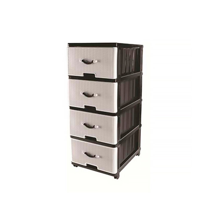 Купить Комод 4 ящика, Дюна, 50х40х94 см, черно-серебряный, 04014, Dunya Plastik