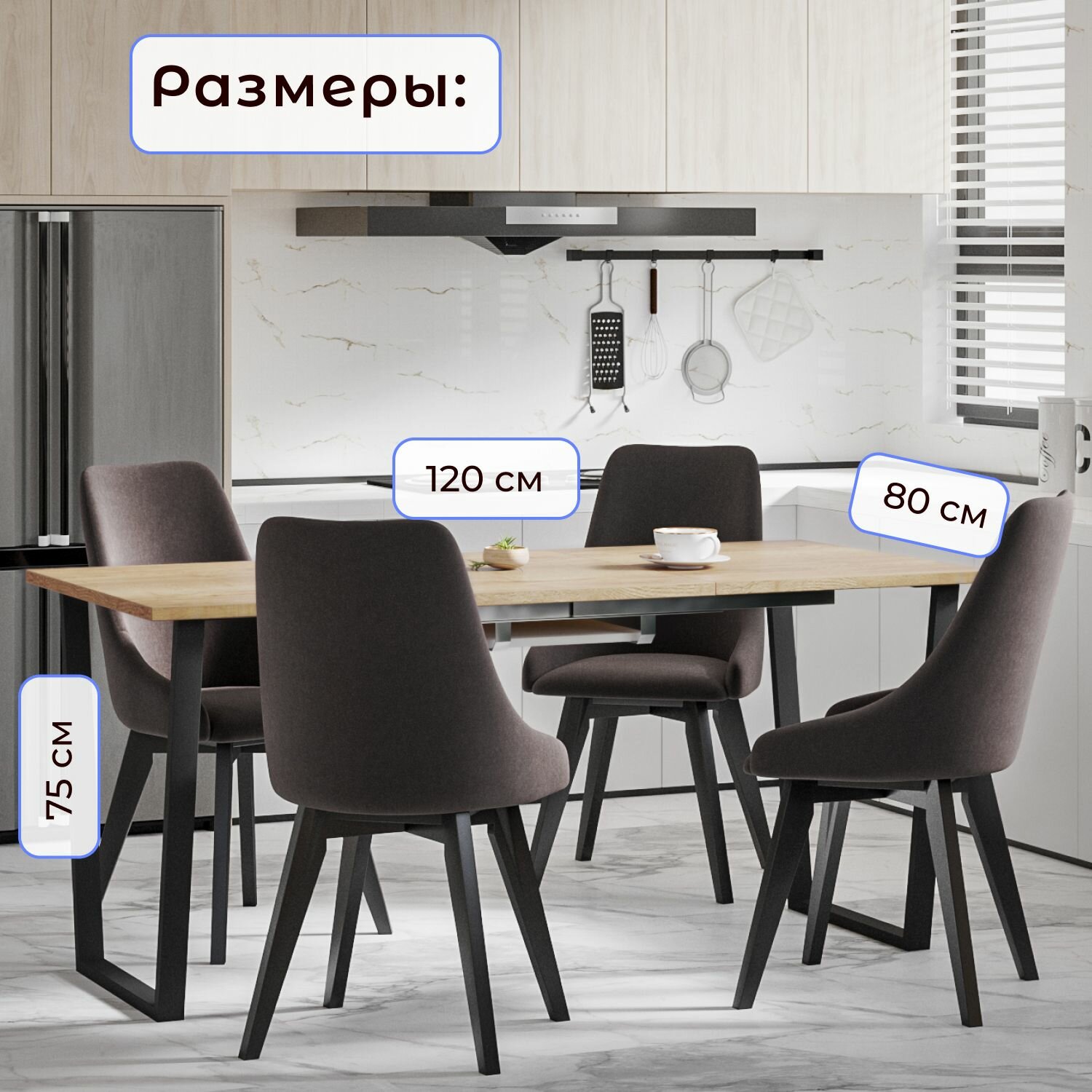 Стол кухонный обеденный атлант 12 EGGER: Дуб Галифакс табак раздвижной в стиле лофт