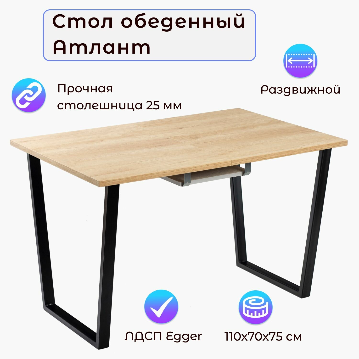 Купить Стол кухонный обеденный атлант 01 EGGER: Дуб Небраска раздвижной в стиле лофт