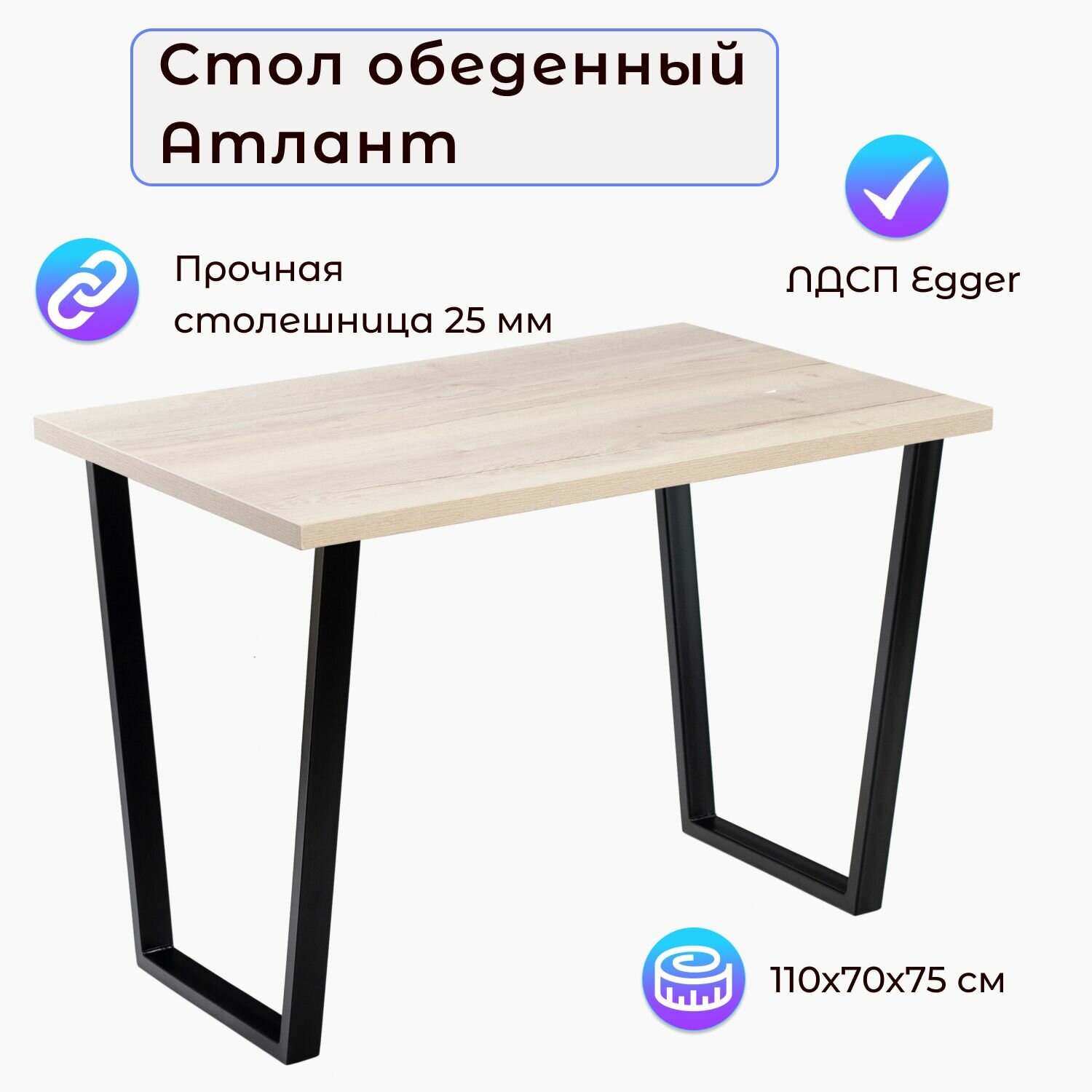 Стол кухонный обеденныйй атлант 08 EGGER: Дуб Небраска нераскладной в стиле лофт