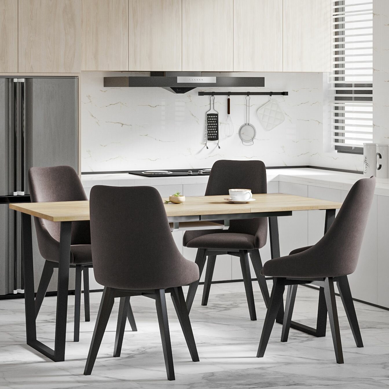 Вписался в интерьер (кухня в цвете дуб бардолино и серый дуб не особо отличается) |