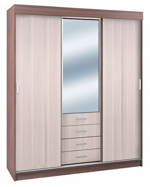 Шкаф-купе с ящиками и зеркалом Стендмебель, Андрей-1, 170х58х210см, Венге-Белфорт