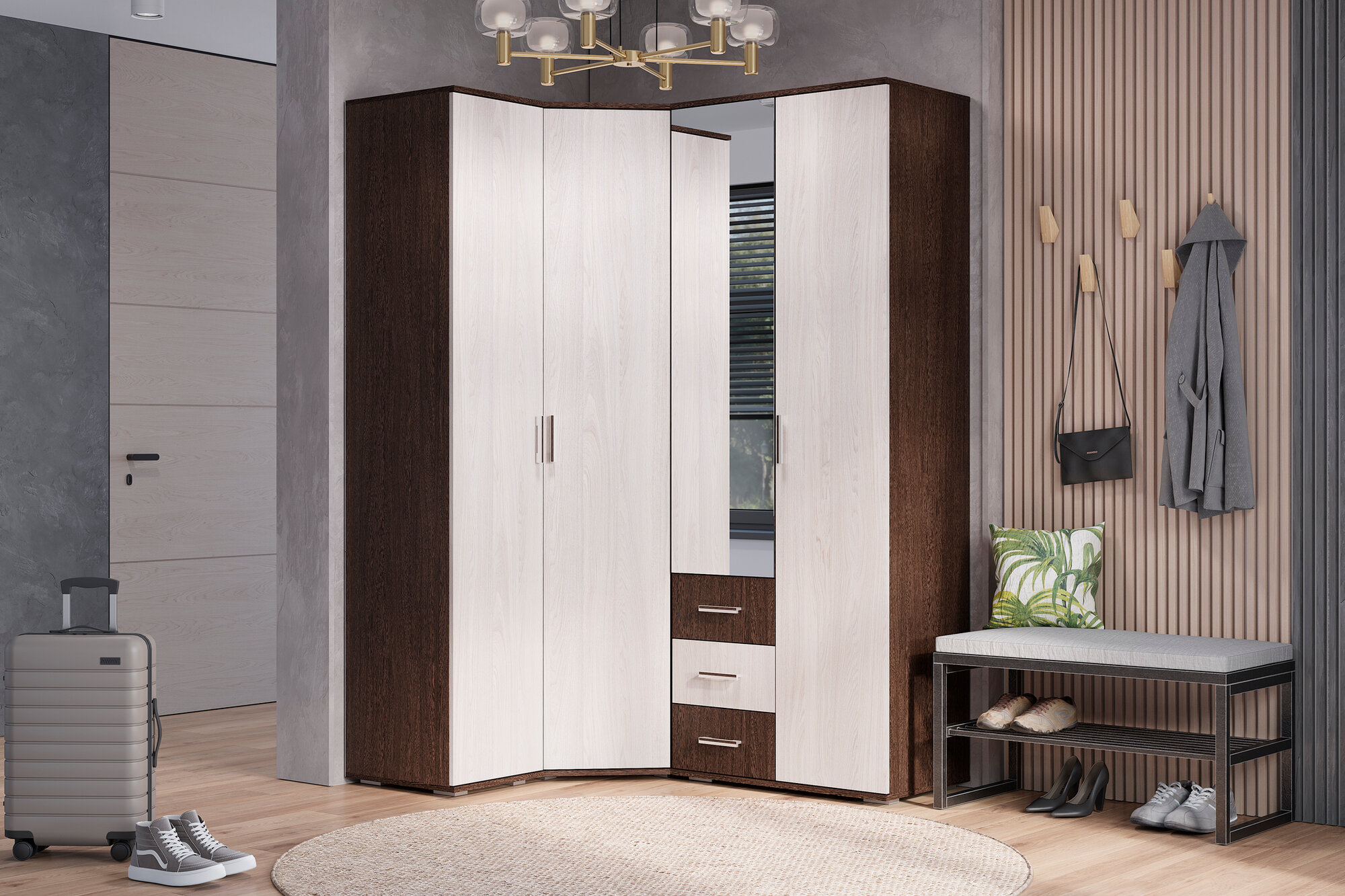 Шкаф угловой для одежды Нонтон, Белла венге / дуб беленый 74 см