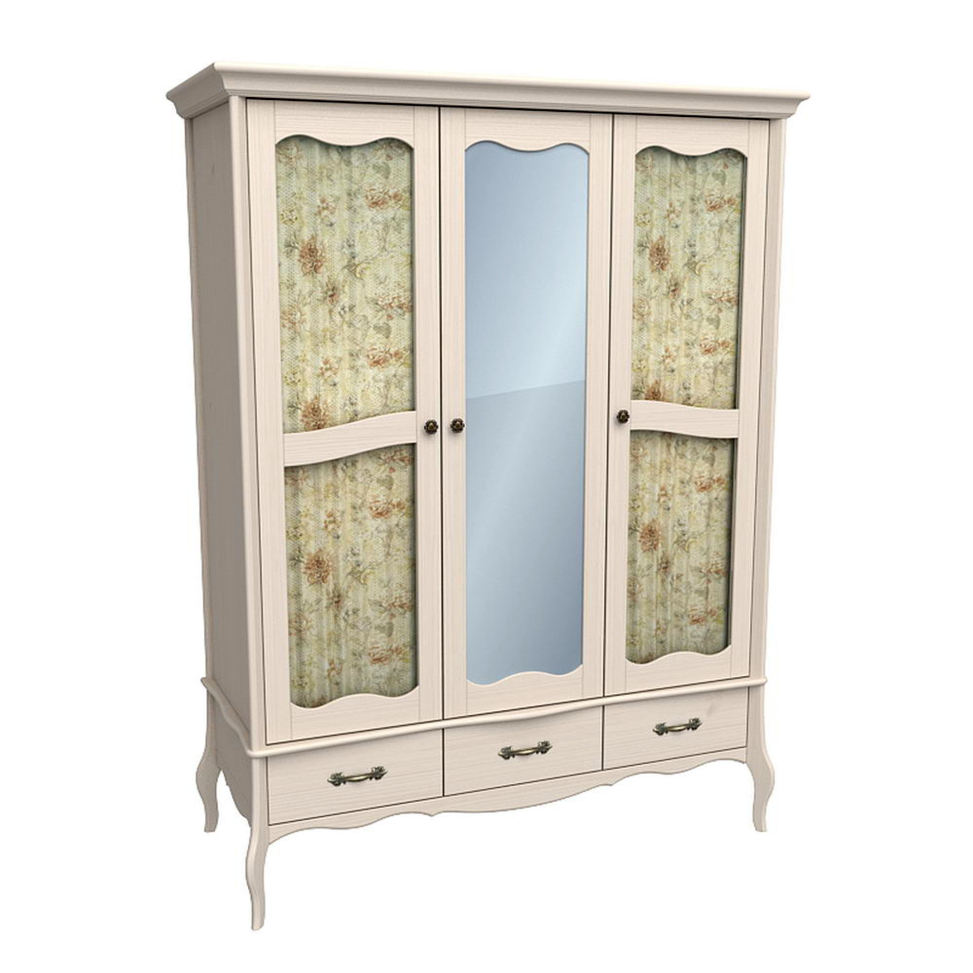 Шкаф "Лебо" 3х-дверный, 158х67х210 см. массив сосны цвет-бежевый воск/антик