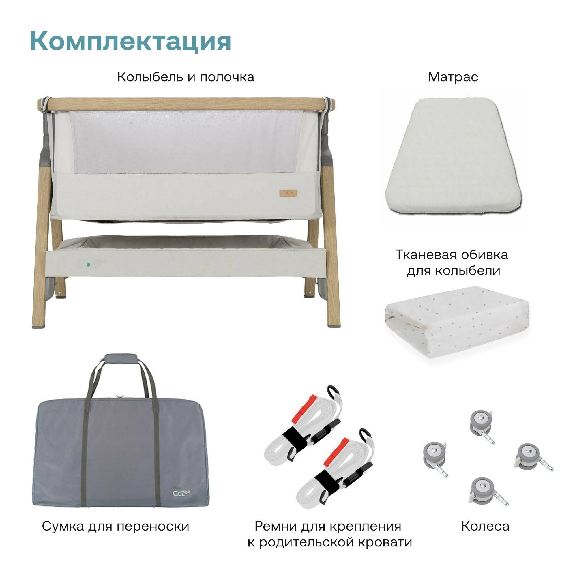 Колыбель для новорожденных Tutti Bambini CoZee с колесами, цвет Oak and Silver V2