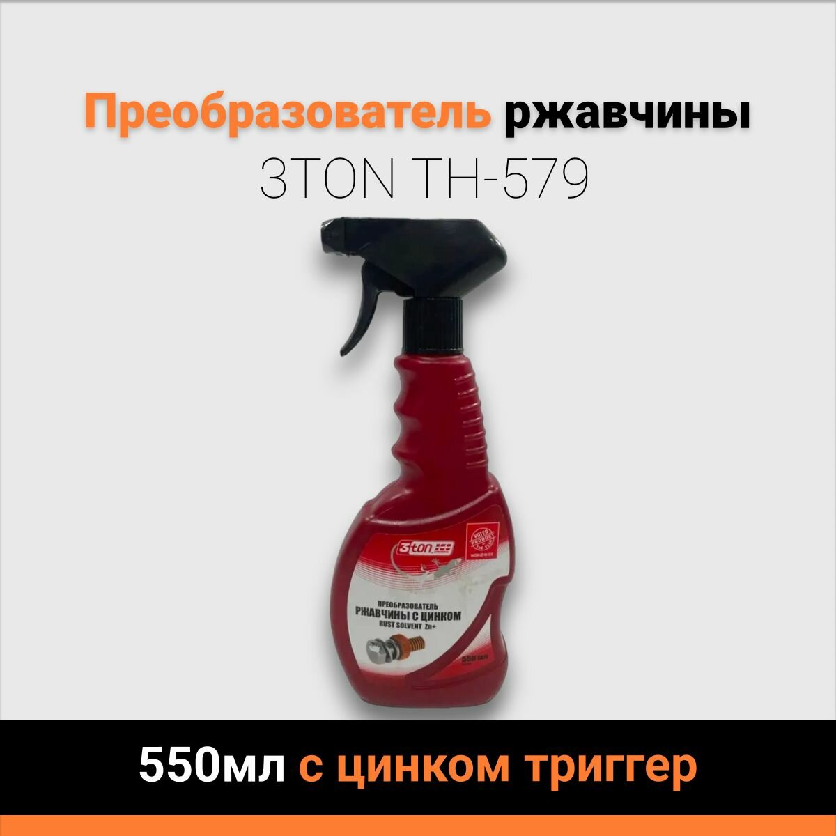 Ниже Вы можете прочитать отзывы на Преобразователь ржавчины 3TON 550мл с цинком триггер TH-579, ознакомится с подробными характеристиками, посмотреть интересные обзоры и фотографии на Преобразователь ржавчины 3TON 550мл с цинком триггер TH-579.