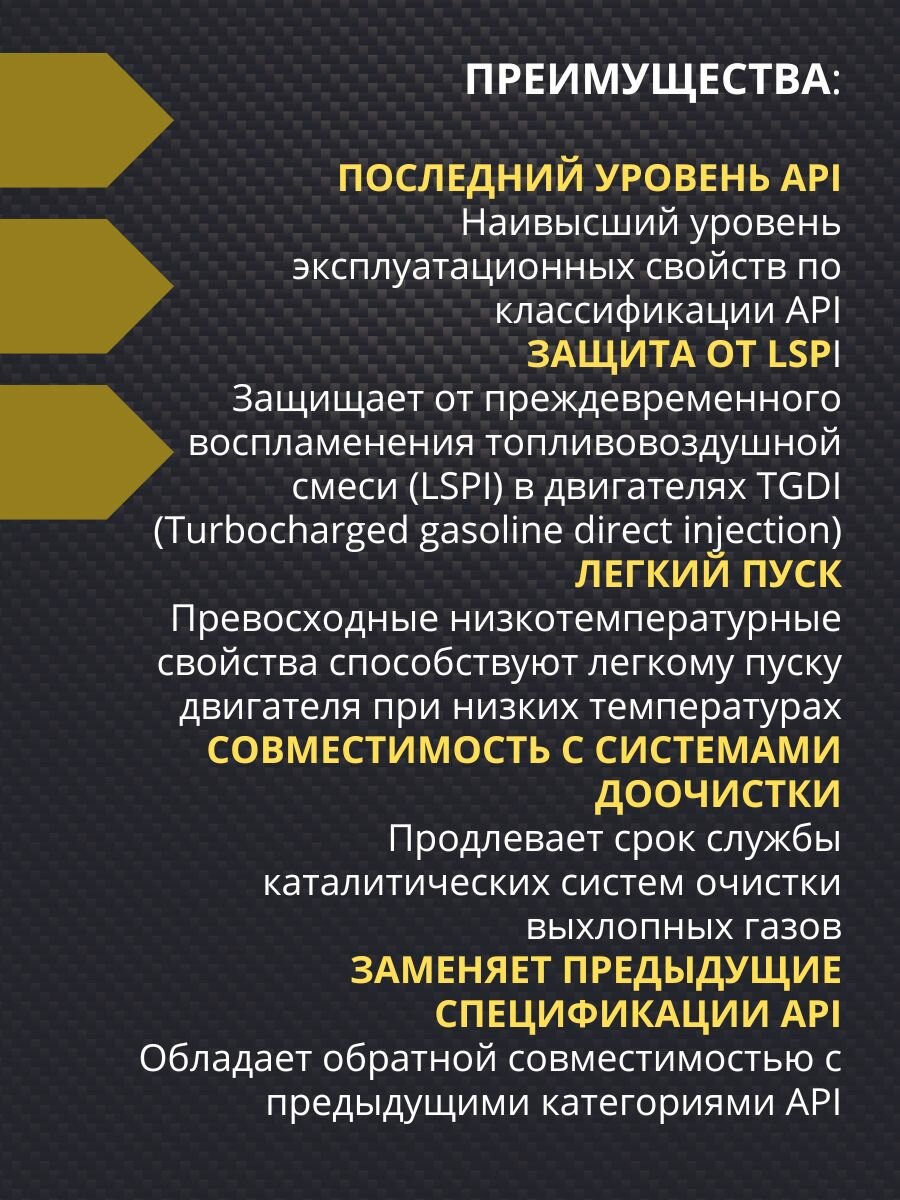 | Плюсы: | Масло имеет одни из лучших показателей по тестам Dexos 1. Лилось в Cadillac CTS 311 л.с. с залегшими кольцами (на другом, неизвестном масле) на протяжении 2х-3х лет. Менялось раз в 5000-6000 максимум. Условия эксплуатации были наидичайшими в жарком климате тапку в пол до 7800 оборотов. В итоге при замене колец выяснилось что мотор внутри новый (пробег 180к), везде зеркало, хон целый, ни намёка на задиры. |