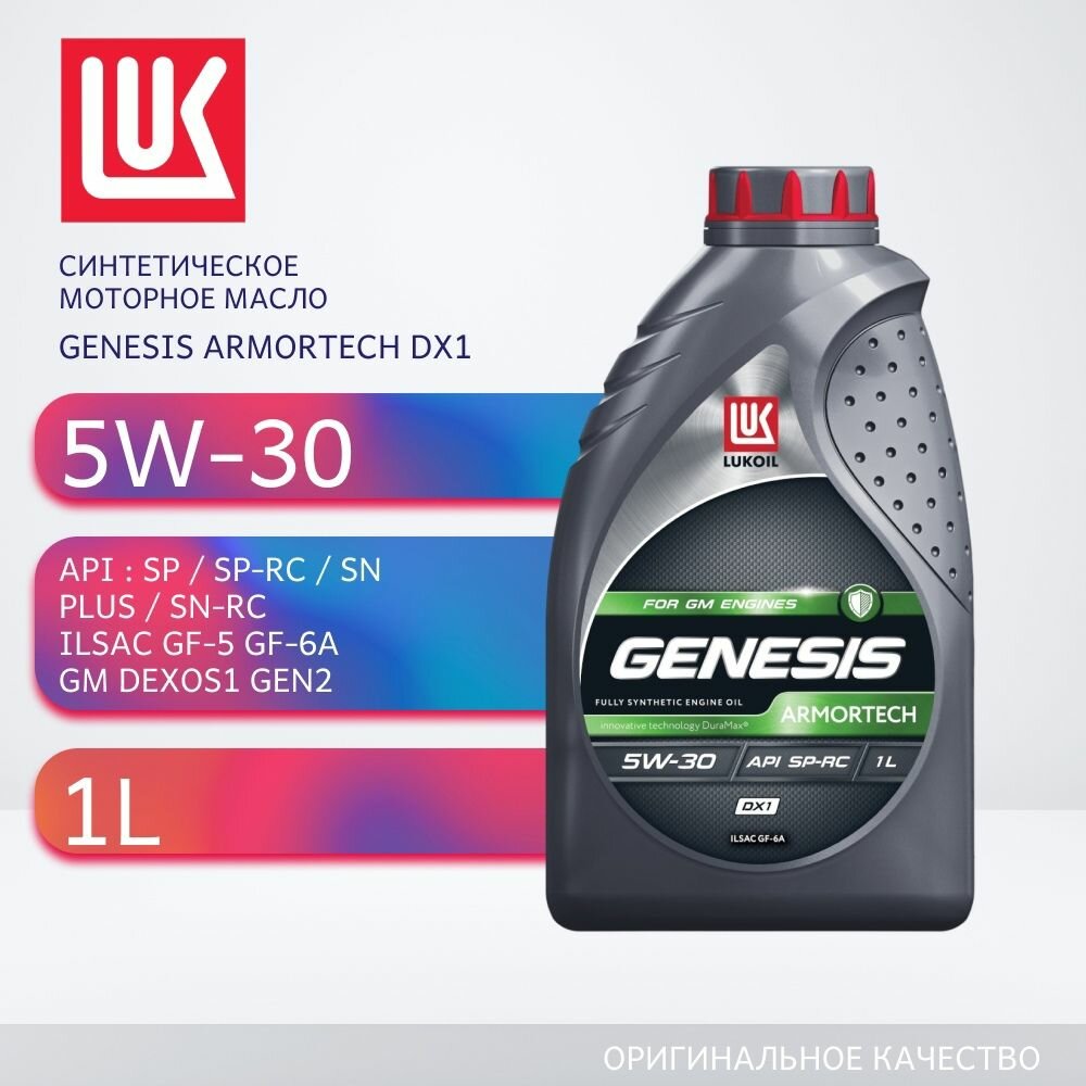 LUKOIL Лукойл Genesis Armortech Dx1 5w-30 (1л) Api Sp, Sp-Rc, Sn Plus Ilsac Gf-6a, Gf-5 Gm Dexos1™ Gen2