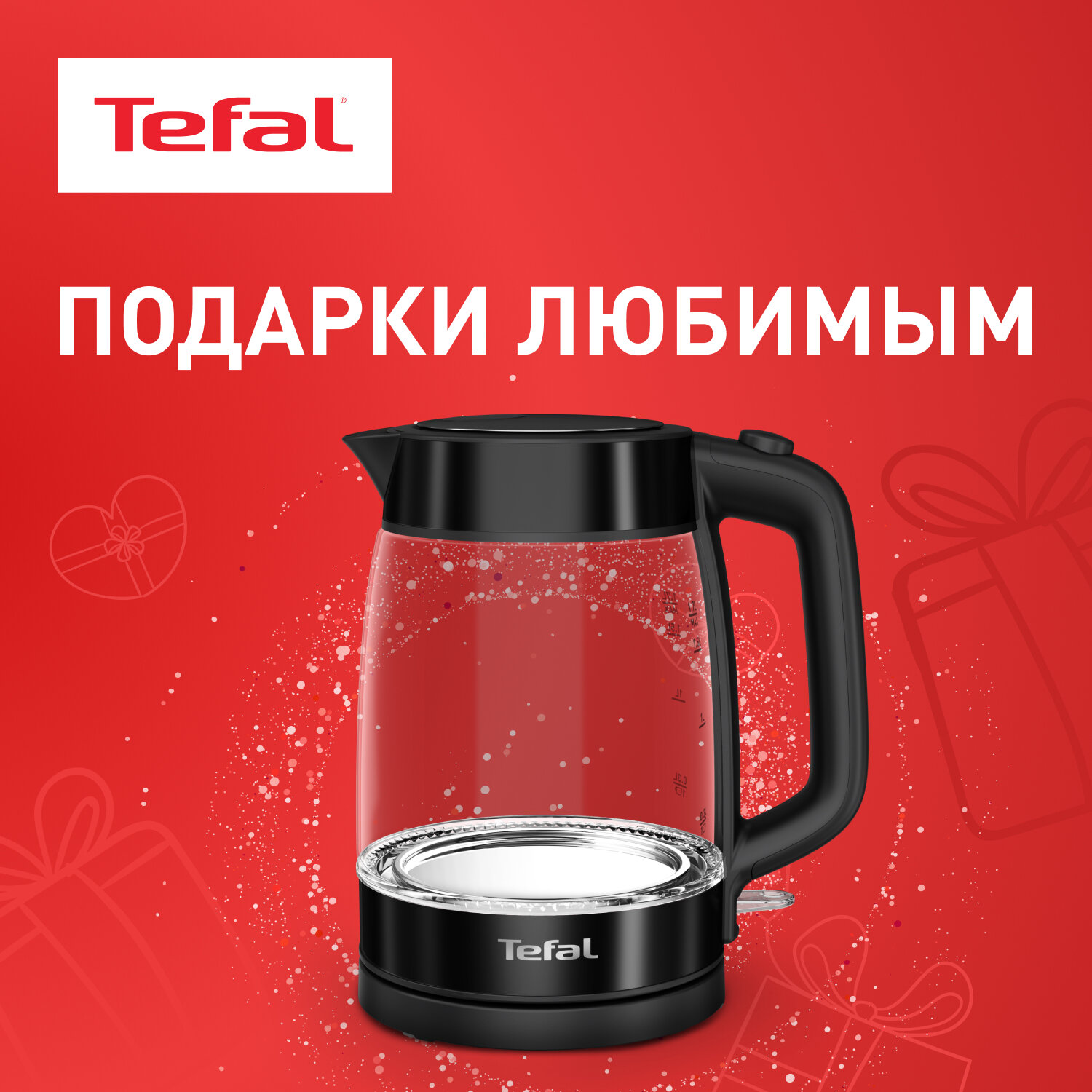 Купить Электрический стеклянный чайник Tefal KI840830 1,7 л с подсветкой, индикатором уровня воды, 2200 Вт, черный