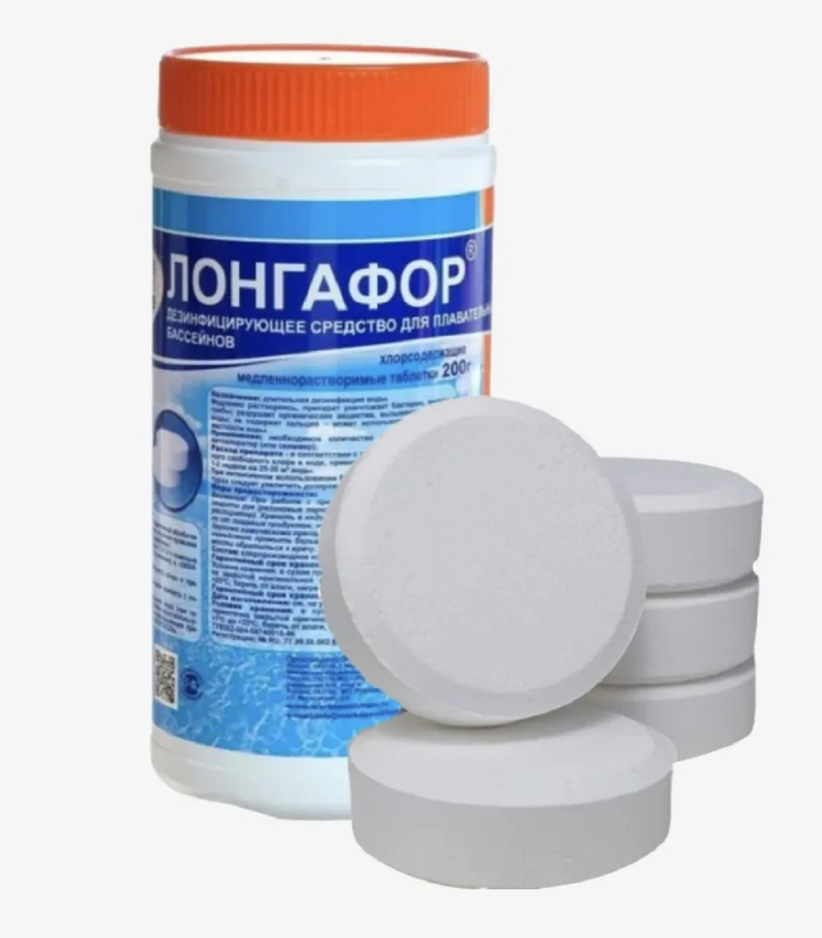 Дезинфицирующее средство "Лонгафор", таблетки 200 г, для воды в бассейне, 1 кг