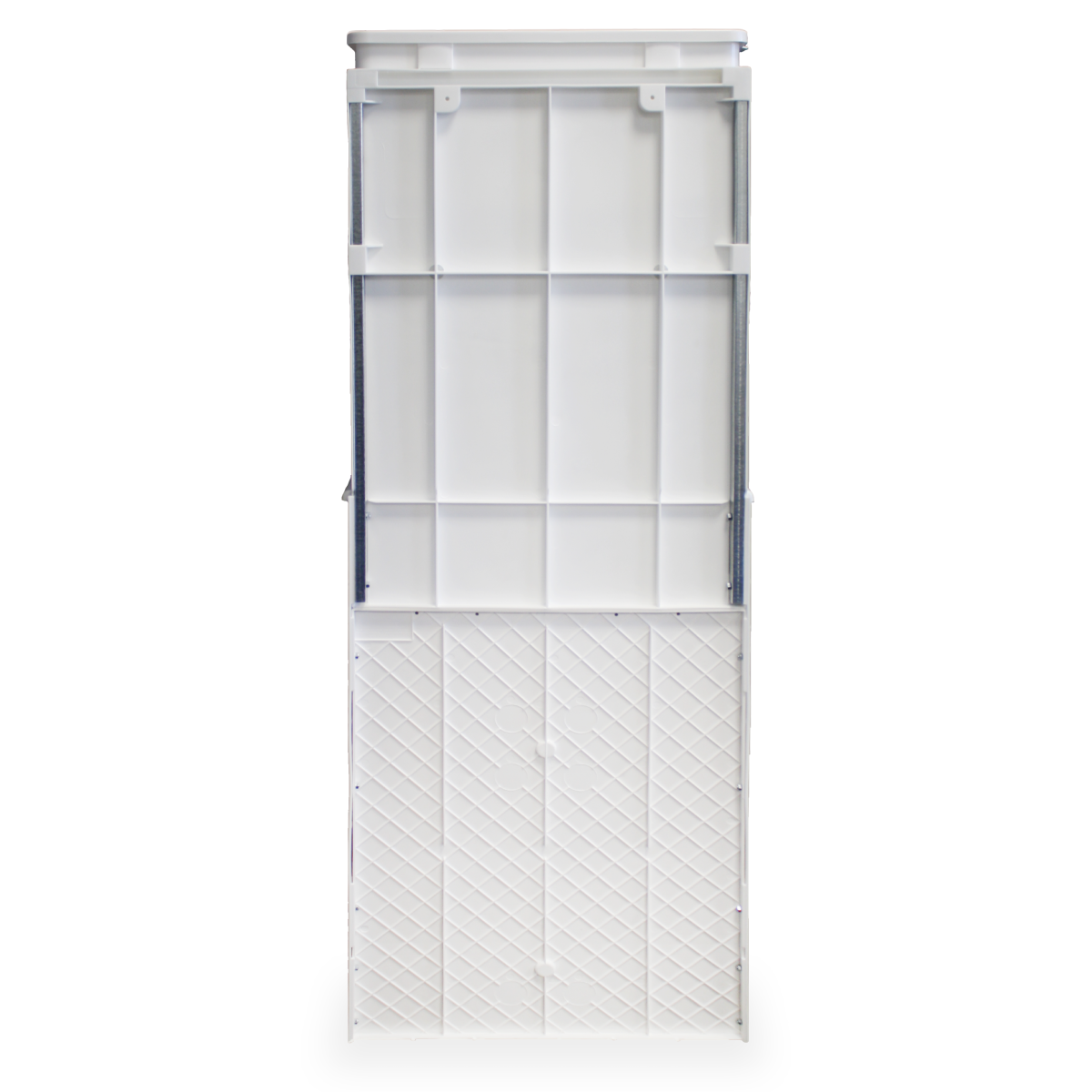 Все пластиковое, кроме двух железных усилителей в верхней панели, к которой крепится бак. Присутствуют отверстия для крепления к стене. В комплекте имеются все метизы. Есть термостат.